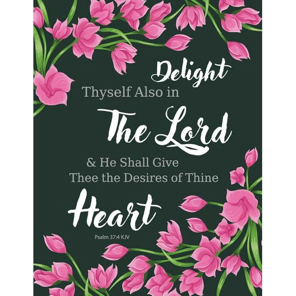 Psalm 37 4 Kjv Delight Thyself Also In The Lord And He Shall Give Thee The Desires Of Thine Heart Pink Flowers Pretty Notebook Watercolor Notebook Composition Book Journal 8 5